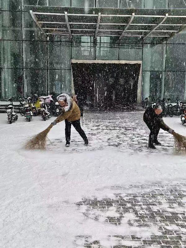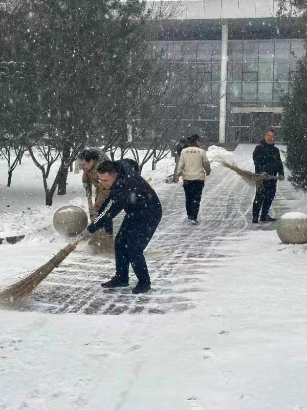 我系领导和教师率先垂范,第一时间迎着大雪,拿着清扫工具为即将下课的学生清出一条“安全通道”,为广大学生保驾护航。