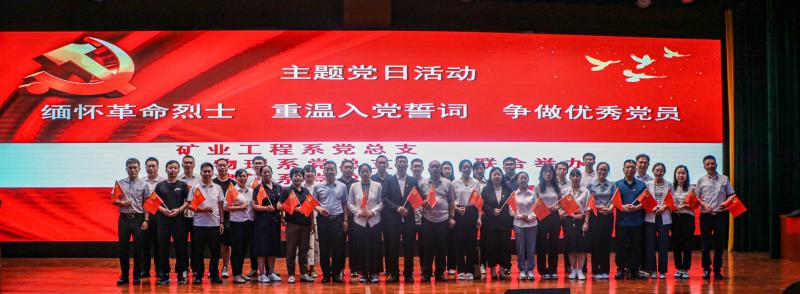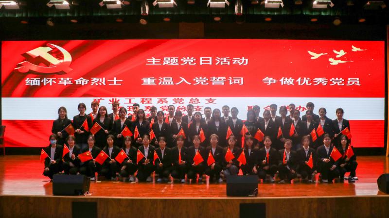 “我志愿加入中国共产党,拥护党的纲领,遵守党的章程,履行党员义务……”矿业工程系党总支副书记李辉同志庄严领誓,全体党员庄严肃立,面向党旗,举起右拳。鲜红的党旗、闪亮的党徽、铿锵的誓词,重温着入党初心、砥砺着育人使命。