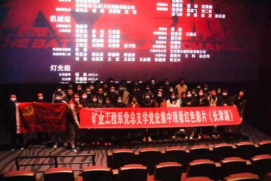 为深入推进党史学习教育,弘扬爱国主义精神,10月24日,矿业工程系党总支组织师生党员观看爱国主义影片《长津湖》,带领大家重温历史,感悟伟大的抗美援朝精神。