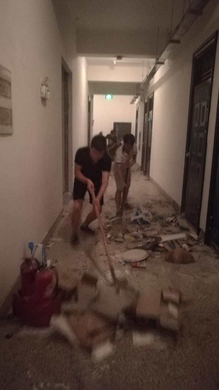 7月24日晚8点,矿业工程系马骉老师组织全体留校学生党员,进行了清扫新办公楼层2层,4层楼道的工作,在校的16名学生党员积极参与其中。截止到晚上9点,完成了所有清扫工作。