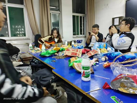 浮生能几许,莫惜醉春风。疫情期间,为缓解学生学习和生活压力,2022年11月14日晚,机械电子2201班积极开展班级团建活动,在校园相对封闭管理的日子里,共同收集快乐。