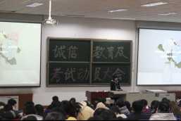 张盈盈等三位老师的诚信教育及考试动员讲话反复强调诚实是一个人得以保持的最高尚的东西。对于当代大学生而言,诚信可以体现为遵守校规校纪,严格约束行为的自律;诚信可以体现为珍惜每一堂课,做好每一次作业的认真态度;诚信还可以体现为做好期末复习的用心,和杜绝侥幸心理、抵制考场作弊的决心,并希望大家不忘“求知”的初心,尽全力投入期末复习,为“成才”、为步入社会,储备更多的知识和能力!