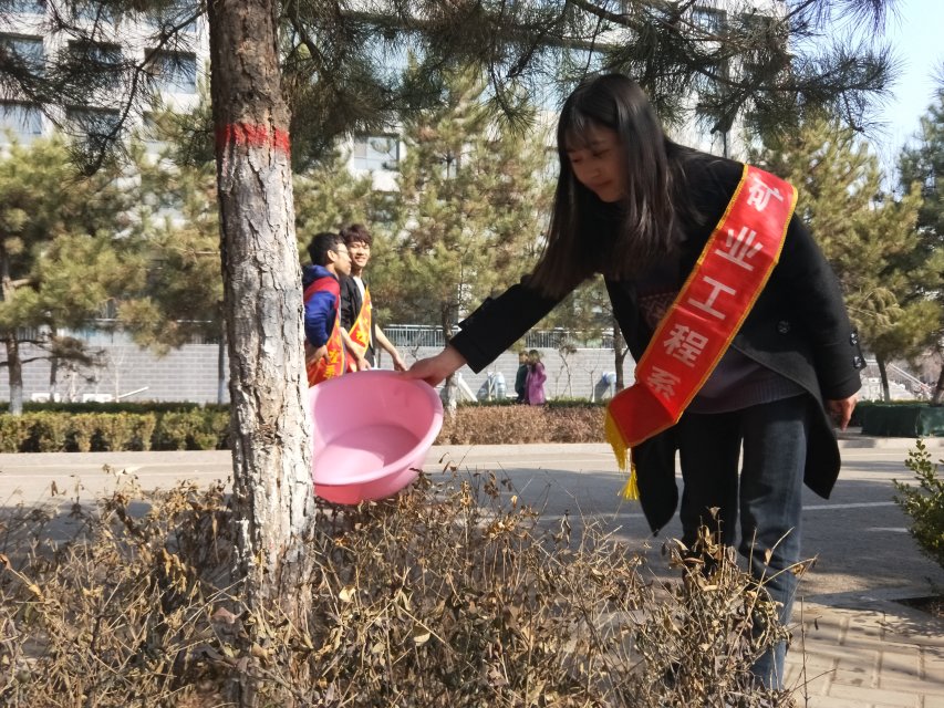 2018年3月11日上午10:00—11:00,为响应ok138太阳集团“关于开展2018年3月志愿服务月‘九个一’活动的通知”,矿业工程系积极组织17级志愿者参加由后勤处和校工会主办的“美化环境,绿色校园”义务浇水活动。