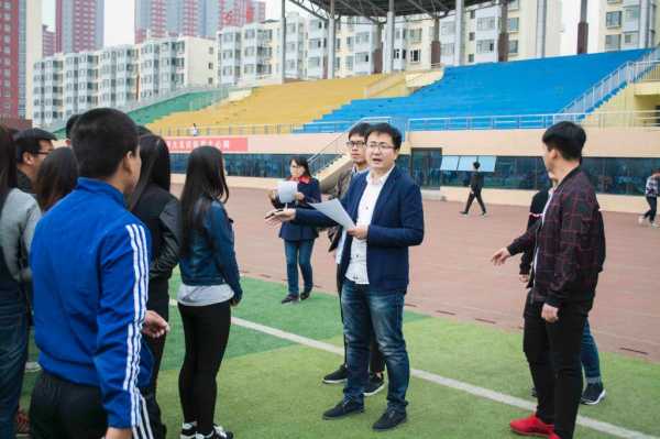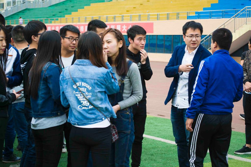 2017年4月15日上午,矿业工程系组织300名学生在田径场进行旗操排练。