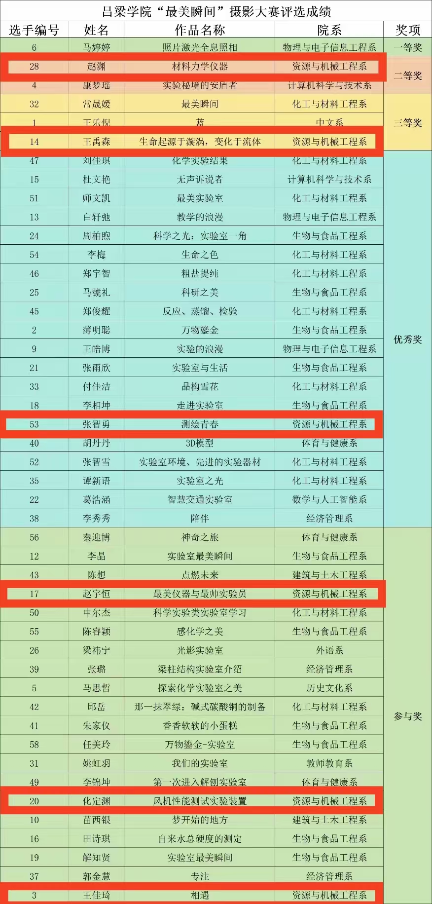获奖名单如下: