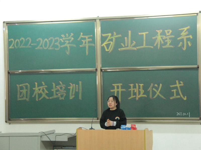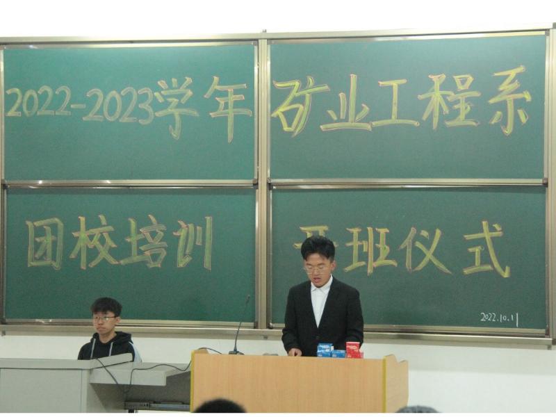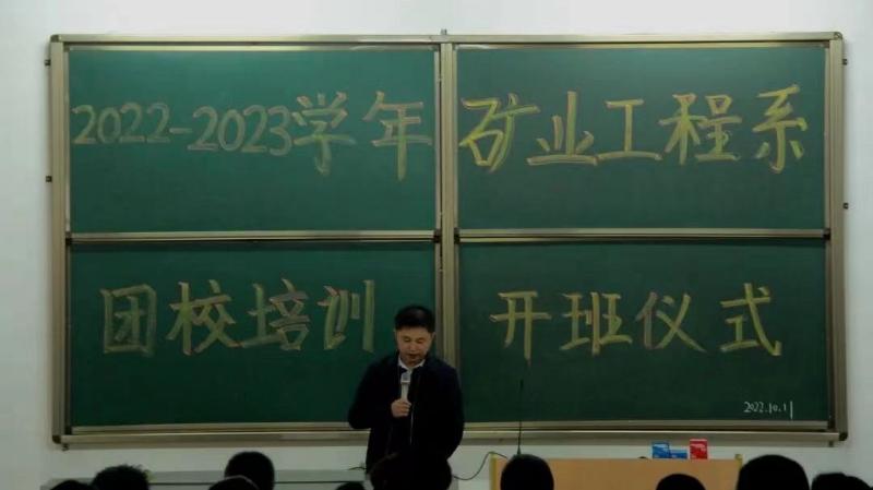 在党的二十大召开之际,矿业工程系于2022年10月11日中午12时在综B阶-101召开了2022-2023学年第一期团校培训开班仪式,会议共有六项议程。本次团校培训开班标志着2022-2023学年第一期团校培训正式拉开帷幕。参加本次开班仪式的人员有矿业工程系党总支副书记李辉老师、矿业工程系分团委书记王琪老师及全体培训学员。伴随着轻快、活泼的音乐,同学们有序的入场,按照会前安排,整齐就座。