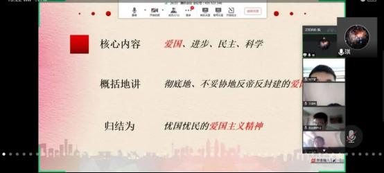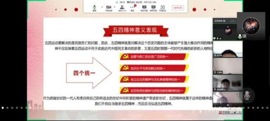 5月4日中午13:00,我系王琪老师在线上给同学们讲解《传承五四精神,争做五四青年》的青马工程培训第二课内容,带领同学们重温历史,了解五四运动的意义,掌握五四精神的内容、重要性等。