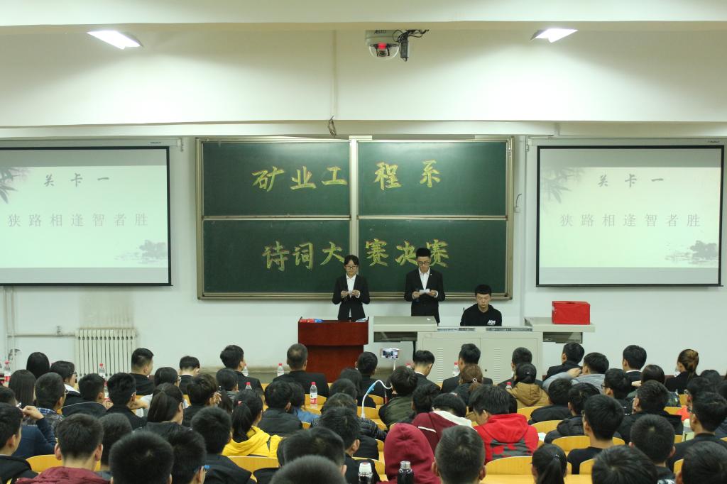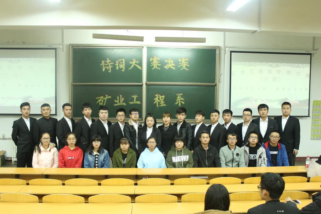 2017年11月12日19:30-21:30,矿业工程系诗词大赛决赛于1C-102举行。矿业工程系分团委、学生分会全体成员到场观看本次比赛。 本次诗词大赛决赛以古诗文竞答形式开展。比赛过程紧张而激烈。经过狭路相逢勇者胜、能力与机遇并存、亡羊补牢、自创朗诵四个环节的比拼最终大赛名次全部决出。于蕾荣获第一名、狄晨曦和王峰斌荣获第二名、鄢列慎、乔亚娇、景丹荣获第三名。 至此,矿业工程系诗词大赛圆满结束。