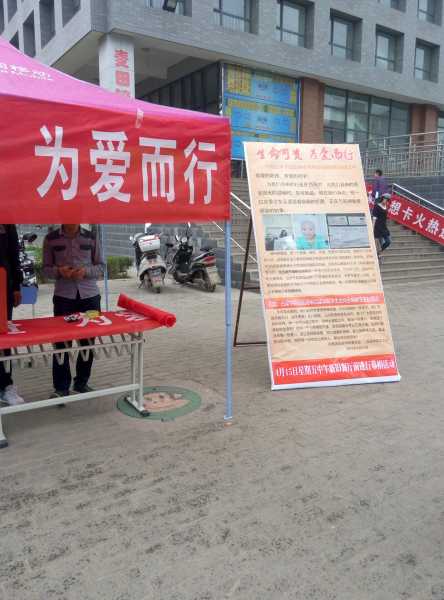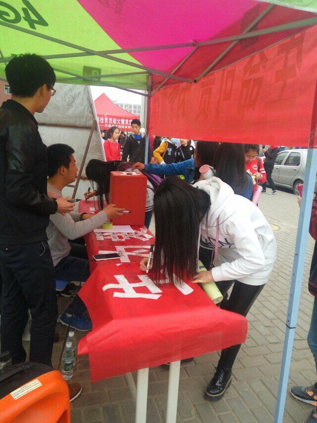 2016年4月15日中午,校团委学生会在新旧餐厅门口为我系学生赵晨瑶组织爱心募捐活动。全校学生踊跃捐款,奉献爱心。