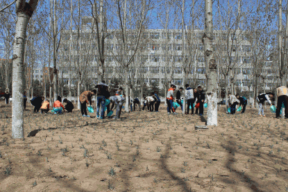 矿业工程系进行“为树林义务浇水”活动。
