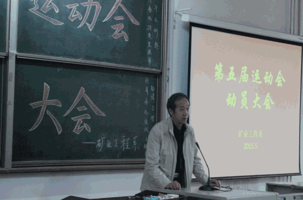 2015年5月6日中午1:30——2:30,矿业工程系在2C—101进行了第五届运动会动员大会,所有参加运动会的学生参加了大会。矿业工程系党总支书记田毛提、系主任宋要斌、副书记薛淑萍、副主任白贵臻和贺全智、安新梅老师出席了大会,大会由薛书记主持。