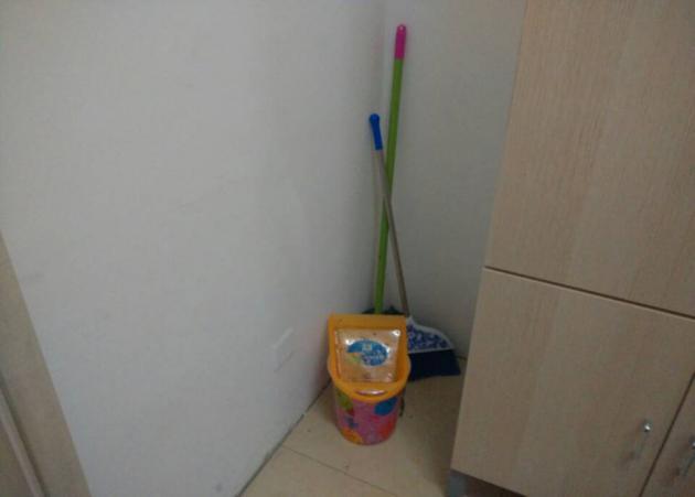 2.清洁工具、马扎摆放:进门左手边(门后边)摆放清洁工具,需保持整洁。马扎整齐摆放在进门右手边。