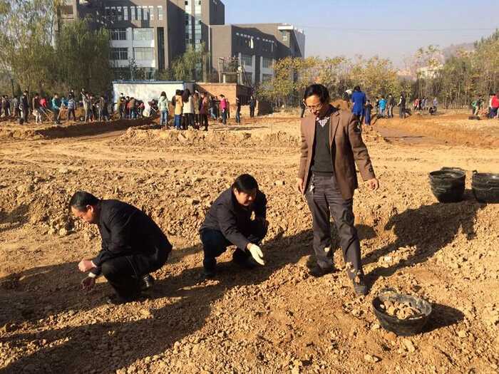 尽管天气晴朗、阳光充沛,但还是有阵阵刺骨的寒风。在这样的条件下,同学们依然充满着激情与活力,挖石头、捡石头、搬石头都积极的抢着干。杨院长、宋主任、白主任、贺主任、马书记更是忙前忙后,在安排学生劳动的同时,更是亲自参与到劳动中,与同学们一起干活。在这几个小时里,大家都不嫌脏不怕累,仔细清理场地。