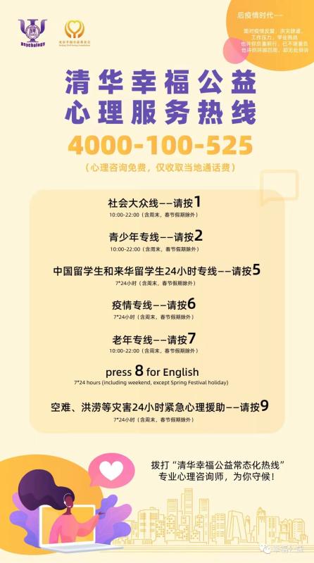 清华幸福公益心理服务热线