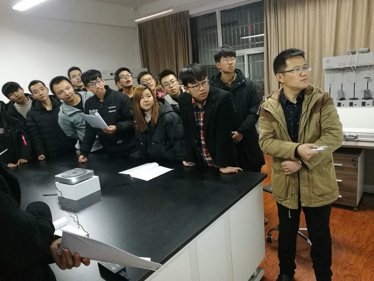 随之向学生们介绍了煤层裂隙探测仪检测煤层裂隙发育特征的工作原理。并在实际操作过程中讲解了仪器使用的相关注意事项。学生们在老师的指导下按照仪器使用说明书进行了实验仪器的操作,加深了对仪器的了解,认识到科技进步离不开科学仪器设备的发展。