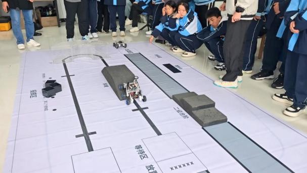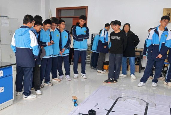 在机器人团队成员的细心指导下,大家体验了操纵小车的乐趣。同学们表现出极大的热情,现场反应良好。