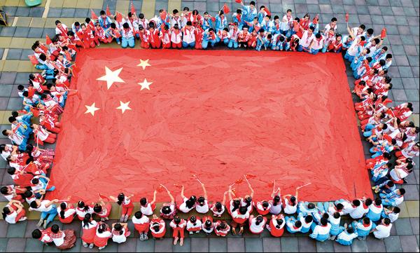社会主义办学方向是我国教育最鲜亮的底色,我国教育要培养的是社会主义建设者和接班人,这是个根本性的问题。图为山东省沂源县荆山路小学开展“红领巾拼国旗祝福祖国迎国庆”活动,学生们在老师带领下用红领巾拼出了一面巨型国旗,表达对伟大祖国的祝福。(教育部供图)