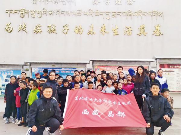 习近平总书记强调,同人民一道拼搏、同祖国一道前进,服务人民、奉献祖国,是当代中国青年的正确方向。他勉励青年人到基层和人民中去建功立业,让青春之花绽放在祖国最需要的地方,在实现中国梦的伟大实践中书写别样精彩的人生。图为2020年8月10日,东北农业大学支教团在西藏昌都市支教期间与学校师生合影。(新华社记者 杨思琪/摄)