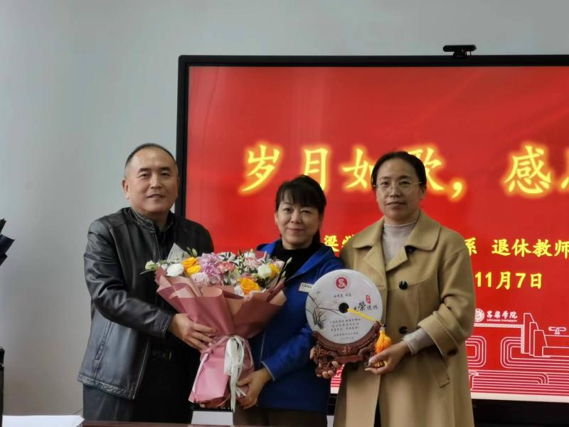 会上,党总支书记薛淑萍对各位退休教师几十年如一日的无私奉献、默默耕耘给予了充分肯定,衷心感谢他们为系部建设与发展做出的积极贡献,并希望二位老师退休后常回“家”看看,继续发光发热支持学校系部的发展。