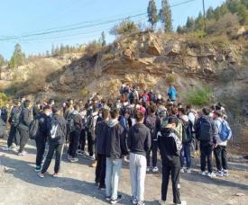 上午8点整教师和学生在逸夫图书馆前集合前往实习地点中阳县柏洼山。在车上郭老师为学生们讲解本次实习目的及内容,并分发测量工具。上午9点左右到达实习地点,带队教师带领学生前往5个地方进行实地勘测,使学生掌握了灰岩、泥岩、砂岩以及煤屑等的特点和因地壳运动所形成的矿物断层原理,并让学生熟练使用测量工具,正确测量走向、倾向和倾角。实习过程高效而紧凑,下午4点左右师生返回学校。实习过程中教师耐心指导,学生认真观察,高质量地完成了本次实习任务。