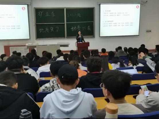 2020年11月10日下午14:00,矿业工程系在教学楼2C-202成功举行了野外地质实习动员大会。出席本次大会的有矿业工程系党总支书记薛淑萍、本次实习带队郭忠华老师、实习指导教师王晶老师、白丽扬老师等,2020级采矿工程(110人)、2020级采矿工程(煤层气34人)和2019级安全工程(64人)专业学生及其班主任老师。