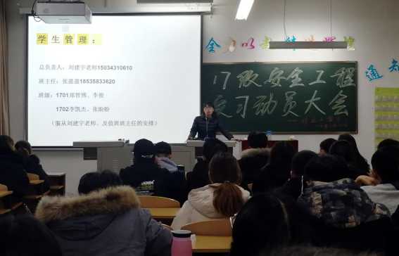 2019年11月22日19:30,安全工程17级在3A-404召开了金工实习动员大会。矿业工程系党总支副书记薛淑萍、班主任张盈盈、安全工程17级全体学生出席了会议。