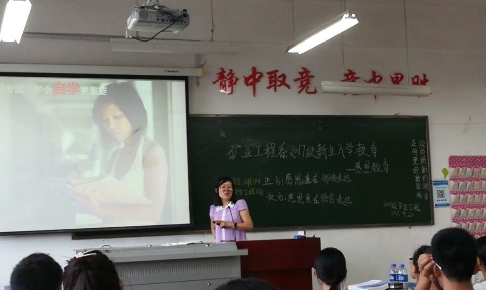 为了使新生初步了解安全工程专业,树立正确的人生价值观,2017年9月20日下午,安全工程2017级新生在3A-406开展了入学教育系列活动之专业教育,邀请安全工程教研室青年骨干教师刘丽为学生答疑解惑。