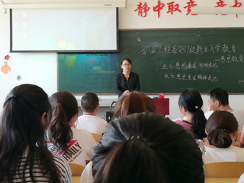 为了弘扬思想道德风尚,增强责任意识,引导学生知恩、感恩、报恩,形成良好的价值观和人生观,2017年9月20日上午,安全工程2017级新生在3A-406开展了入学教育系列活动之感恩教育,系党总支副书记薛淑萍,班主任张盈盈,系学生分会主席常进出席了该活动,辅导员王存磊、李晋担任主持。
