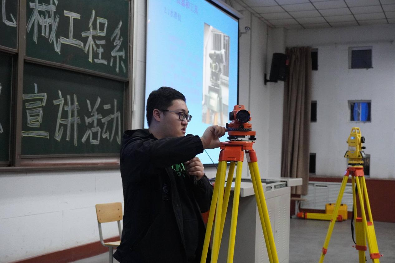 高鹏伟老师深入浅出解析测绘核心知识如何在各类竞赛中巧妙运用,带领同学们体验了从理论基础到实践应用的完美跨越。同时,他还创新性地将课堂教学与竞赛要求有机结合,实现了知识掌握与能力提升的双重目标。测绘工程2302班谭宏伟同学凭借着丰富的仪器操作与实践经验,在现场为同学们介绍仪器的各种结构,并演示了仪器操作流程以及数据采集与处理的全过程。