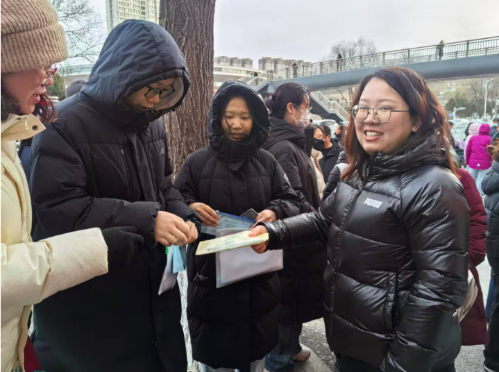 2025年12月20日,全国硕士研究生招生考试正式开考。清晨,在我市各主要考点外,除了奔赴梦想的考生,还有一群特殊的身影——我系由系领导带队,各毕业班辅导员老师和学业班主任组成的“暖心护航”送考服务队。他们不畏严寒,全程驻守,将关怀化为一个个及时、具体的行动,成为考场外最坚实的后盾。