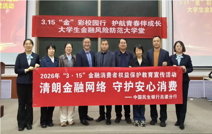 为提升同学们风险识别能力,增强依法维权意识,树立理性消费与正确投资观念,2026年3月12日下午14:30,我系在国家金融监督管理总局吕梁监管分局指导下,联合吕梁市银行保险业协会、工商银行吕梁分行等九家金融机构,于弘毅楼1C-201教室开展大学生金融风险防范大学堂。国家金融监督管理总局吕梁监管分局消保科科长邢建斌,工商银行客服经理曹转转,民生银行个金部经理孟艳娜,山西证券投教中心讲师李真宇,山西省青年相声演员刘乾、孙永刚,以及我系副主任郎君、专任教师张盈盈、刘丽出席活动,我系200余名同学参加。